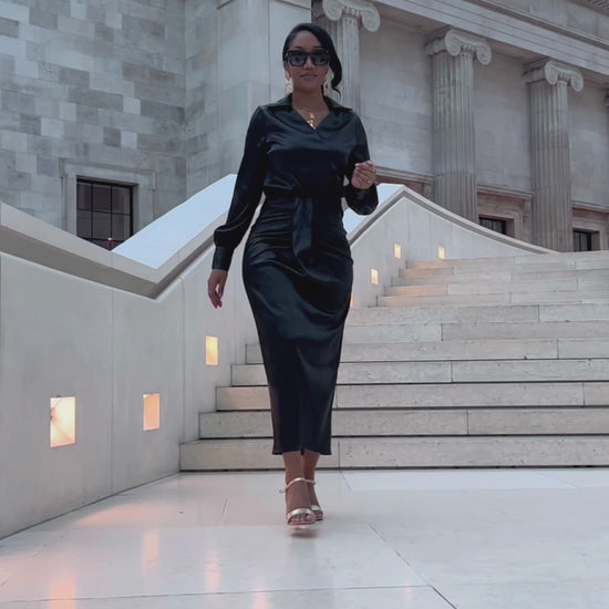 It comes with an elegant shirt with a beautiful sleekness to it which has been perfectly paired with the skirt. There is a button located at the chest to allow for easy wear. There is also a relaxed collar and stunning sleeve detail which is buttoned to give the ultimate sophisticated look.